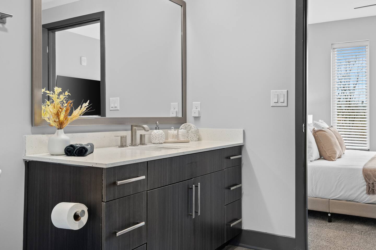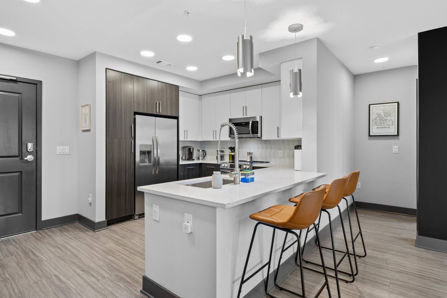 βοΈ The Space β Spacious Open Layout β Bright and airy, the condo boasts an open floor plan with a comfortable living area and plenty of natural light. β 2 Bedrooms, 2 Bathrooms β Sleeps up to 6 guests comfortably. β Bedroom 1: King bed, ensuite bathroom, walk-in closet, Smart TV. β Bedroom 2: King bed, walk-in closet, Smart-TV and easy access to the second full bathroom. β Living Room: Cozy sectional sofa (pull-out for extra sleeping space), Smart TV, stylish dΓ©cor. β Kitchen & Dining: Fully equipped kitchen with stainless steel appliances, coffee maker, blender, toaster, and cookware as well as a breakfast bar. β Bathrooms: Modern and clean, stocked with fresh towels, shampoo, conditioner, and body wash. Also Hairdryer, Q-tips, Makeup towels and Cotton face pads. β Washer & Dryer: In-unit laundry with detergent provided. π Guest Access: Guests will have full access to the condo and building amenities, including: β Gated Parking ($12/DAY) β MUST BE ARRANGED BEFORE HAND. β Fitness Center β Stay active with a fully equipped gym. β 10th FLoor Sky Lounge/Game Room β Enjoy city views and a relaxing atmosphere. You can enjoy the pool table, poker table, and foosball table while your there β Club House and Community Pool β Elevator Access β No need to worry about stairs! π₯ Exclusive Guest Amenities: β’ Self-Check in System for Secure and Convenient Access β’ Climate Control for Your Comfort β’ In-Unit Laundry Facilities β’ Gated Parking ($12/day) β’ Detailed Guidebook with Local Recommendations β’ 4K HDTVs with Netflix β’ High-speed WiFi β’ Laptop friendly workspace β’ Ideal for long-term stays β’ Washer + dryer w/ detergent β’ Dishwasher w/ detergent β’ Keurig with coffee β’ Central A/C & Heat β’ Club house and community Pool with outdoor grill area access β’ SKY LOUNGE/GAME room access (inc. Pool Table, Poker Table, Foosball Table) β’ WIFI ACCESS THROUGHOUT ENTIRE BUILDING πLocation β Perfectly Situated! β 5 min to Downtown Nashville β 7 min to Broadway & Honky Tonks β 6 min to The Gulch & Music Row β 5 min to Vanderbilt University & Hospital β 10 min to Nissan Stadium (Titans) & Bridgestone Arena (Predators) β 15 min to Nashville International Airport (BNA) Nestled in a walkable area with trendy cafes, restaurants, and boutiques, youβll have everything you need nearby. Grab brunch at The Centennial or Star Bagel, enjoy a craft beer at TailGate Brewery, or take a stroll through Centennial Park and The Parthenonβall within minutes from your door! Additional Info πΉ Self Check-in β Easy for a smooth arrival. πΉ High-Speed WiFi β Stay connected for work or play all throughout the building πΉ Family-Friendly β Pack βn Play & high chair available in unit πΉ No Smoking | No Pets | No Parties β Please respect the neighbors and house rules. Why Choose Our Place? π Prime location close to all the Nashville hotspots π Stylish & cozy space with modern amenities π Perfect for groups, families, or business travelers π Hassle-free self check-in & premium comfort Book now and experience Nashville like a local with all the comforts of home! πΈβ¨