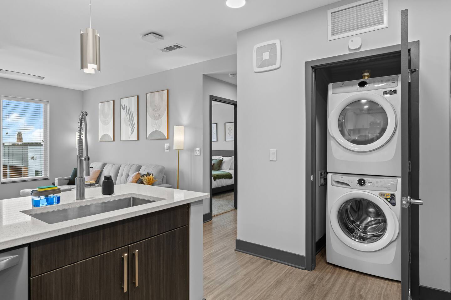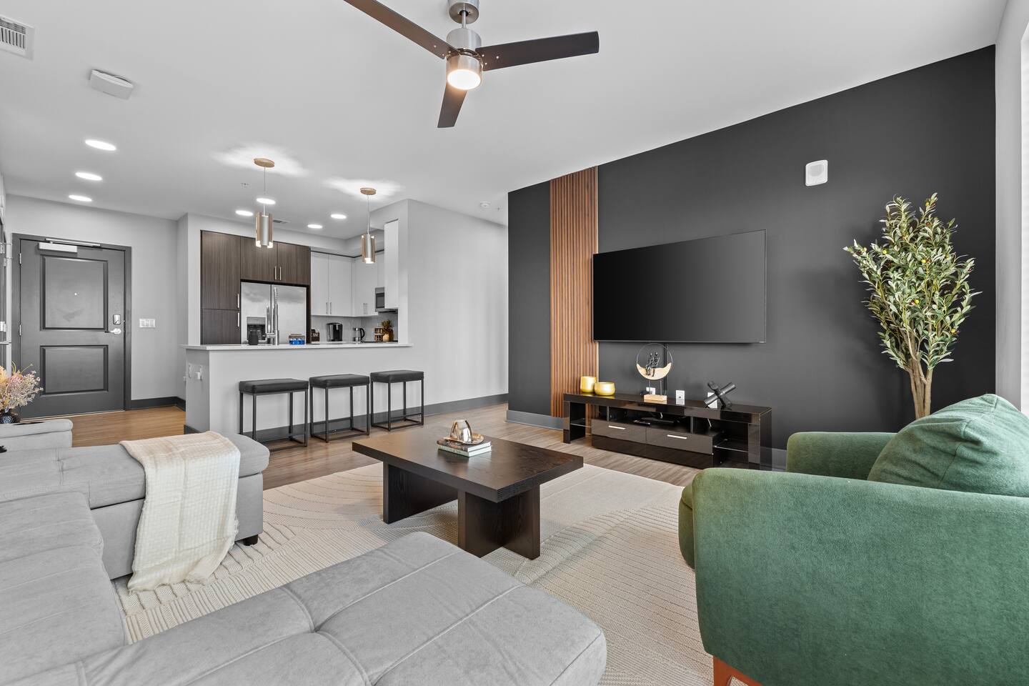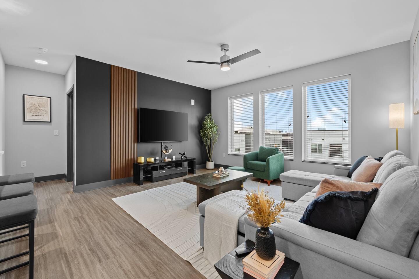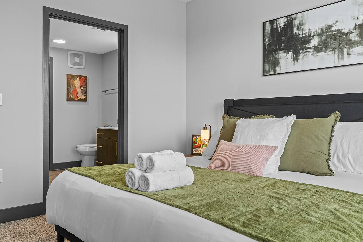✨ The Space: ✔ Spacious Living Area – Relax in a beautifully furnished open-concept living space with a smart TV, cozy seating, and plenty of natural light. ✔ Fully Equipped Kitchen – Cook up your favorites in a modern kitchen with stainless steel appliances, quartz countertops, and all essentials. ✔ Master Bedroom – Features a King-sized bed, en-suite bathroom, and walk-in closet for ultimate convenience. ✔ Second Bedroom – Equipped with a comfortable King-sized bed and plenty of storage. ✔ Two Full Bathrooms – Modern and stylish with fresh linens, toiletries, and spa-like touches. ✔ Washer & Dryer – In-unit for added convenience. ✔ Fast WiFi & Smart TVs – Stream your favorite shows or catch up on work with high-speed internet. ✔ On-Site Gated Parking ($12/Day) -- MUST BE ARRANGED BEFORE HAND ⭐ Location Highlights: ✅ 5 minutes to Broadway & Downtown Nashville ✅ Close to The Gulch, Music Row & Vanderbilt University ✅ Walking distance to trendy cafes, bars, and local shops ✅ Quick access to Centennial Park, Marathon Village, and Nissan Stadium 🔥 Exclusive Guest Amenities: • Keyless Entry System for Secure and Convenient Access • Climate Control for Your Comfort • In-Unit Laundry Facilities • Gated Parking ($12/day) • Detailed Guidebook with Local Recommendations • 4K HDTVs with Netflix • High-speed WiFi • Laptop friendly workspace • Ideal for long-term stays • Washer + dryer w/ detergent • Dishwasher w/ detergent • Keurig with coffee • Central A/C & Heat • Club house and community Pool with outdoor grill area access • SKY LOUNGE/GAME room access (inc. Pool Table, Poker Table, Foosball Table) • WIFI ACCESS THROUGHOUT ENTIRE BUILDING 📌 Additional Details: ✔ Self-Check-In with Smart Lock for an easy, seamless arrival ✔ Professionally Cleaned & Stocked with Essentials ✔ Perfect for Couples, Families, or Business Travelers Book now and experience Music City like a local! 🎶✨