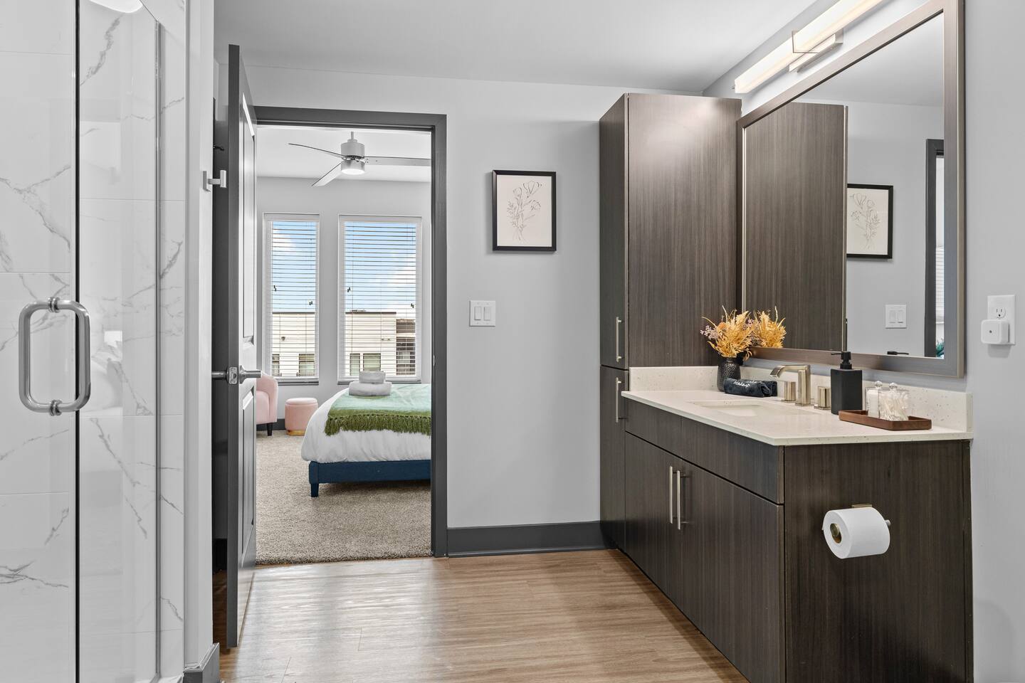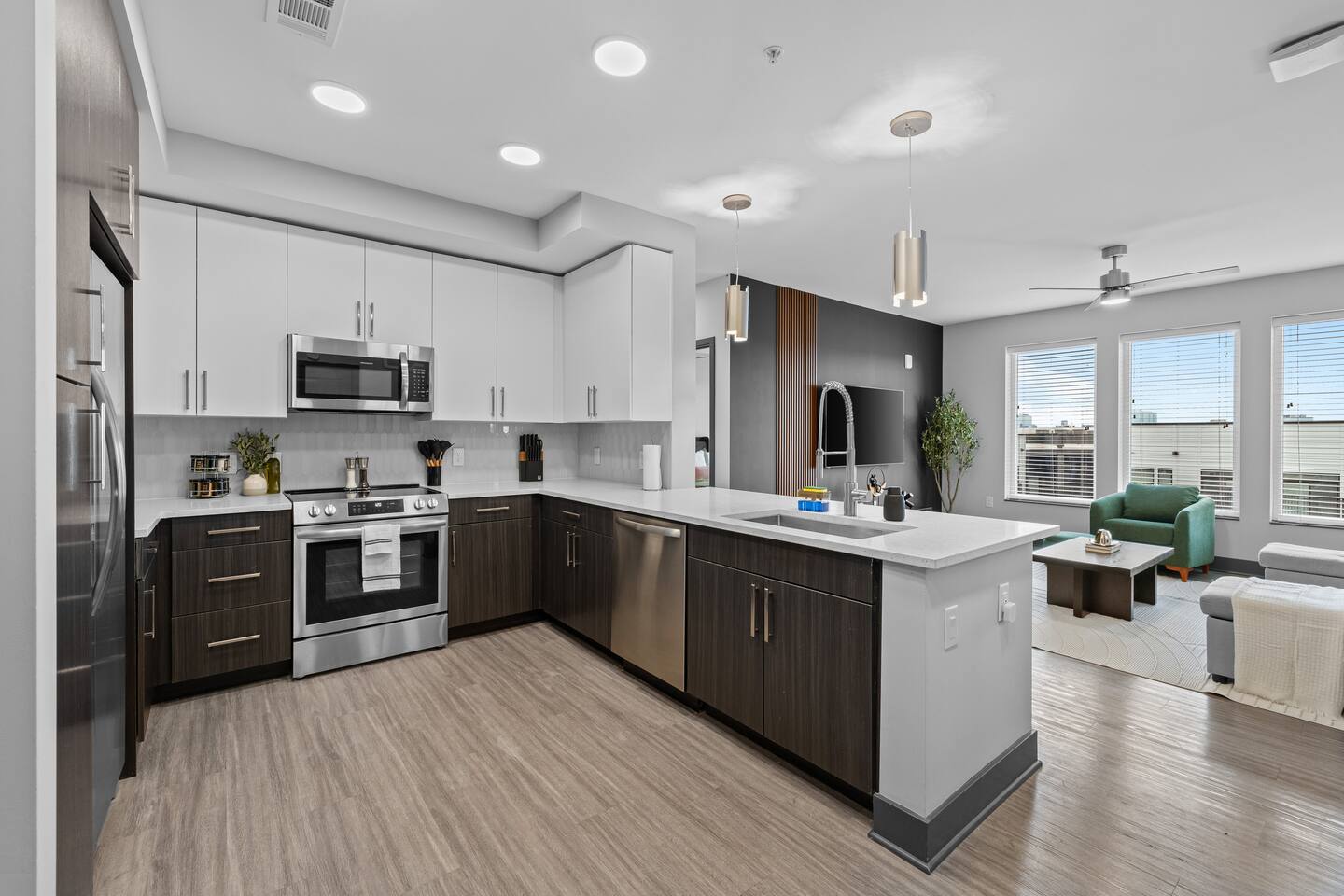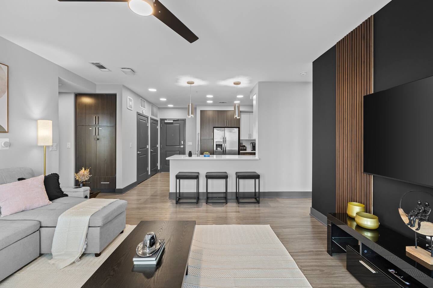 ✨ The Space: ✔ Spacious Living Area – Relax in a beautifully furnished open-concept living space with a smart TV, cozy seating, and plenty of natural light. ✔ Fully Equipped Kitchen – Cook up your favorites in a modern kitchen with stainless steel appliances, quartz countertops, and all essentials. ✔ Master Bedroom – Features a King-sized bed, en-suite bathroom, and walk-in closet for ultimate convenience. ✔ Second Bedroom – Equipped with a comfortable King-sized bed and plenty of storage. ✔ Two Full Bathrooms – Modern and stylish with fresh linens, toiletries, and spa-like touches. ✔ Washer & Dryer – In-unit for added convenience. ✔ Fast WiFi & Smart TVs – Stream your favorite shows or catch up on work with high-speed internet. ✔ On-Site Gated Parking ($12/Day) -- MUST BE ARRANGED BEFORE HAND ⭐ Location Highlights: ✅ 5 minutes to Broadway & Downtown Nashville ✅ Close to The Gulch, Music Row & Vanderbilt University ✅ Walking distance to trendy cafes, bars, and local shops ✅ Quick access to Centennial Park, Marathon Village, and Nissan Stadium 🔥 Exclusive Guest Amenities: • Keyless Entry System for Secure and Convenient Access • Climate Control for Your Comfort • In-Unit Laundry Facilities • Gated Parking ($12/day) • Detailed Guidebook with Local Recommendations • 4K HDTVs with Netflix • High-speed WiFi • Laptop friendly workspace • Ideal for long-term stays • Washer + dryer w/ detergent • Dishwasher w/ detergent • Keurig with coffee • Central A/C & Heat • Club house and community Pool with outdoor grill area access • SKY LOUNGE/GAME room access (inc. Pool Table, Poker Table, Foosball Table) • WIFI ACCESS THROUGHOUT ENTIRE BUILDING 📌 Additional Details: ✔ Self-Check-In with Smart Lock for an easy, seamless arrival ✔ Professionally Cleaned & Stocked with Essentials ✔ Perfect for Couples, Families, or Business Travelers Book now and experience Music City like a local! 🎶✨
