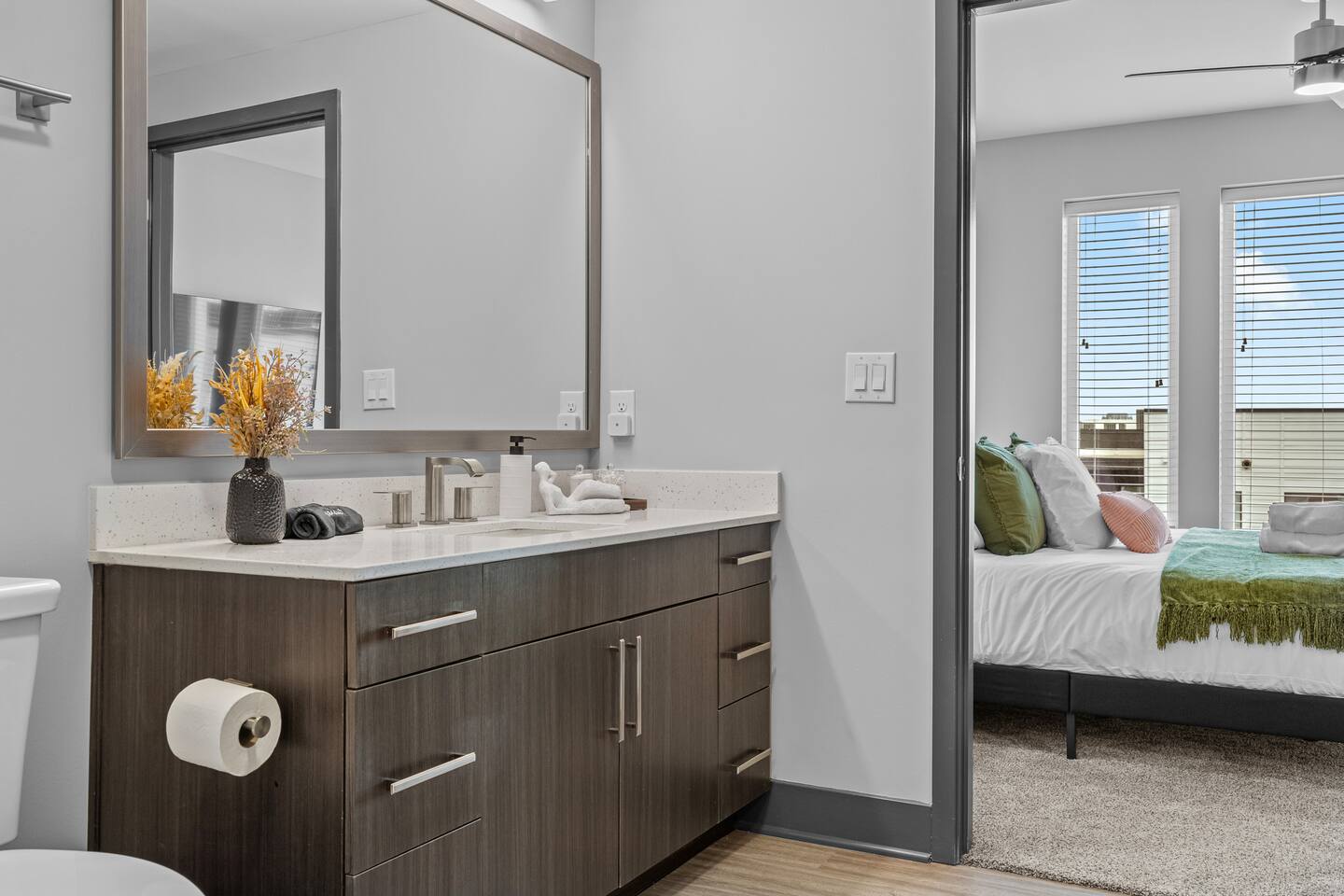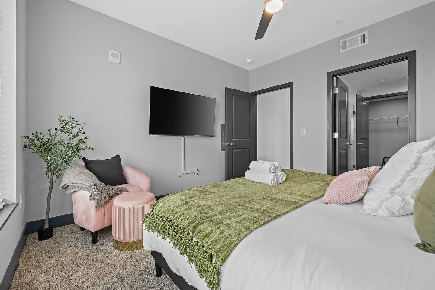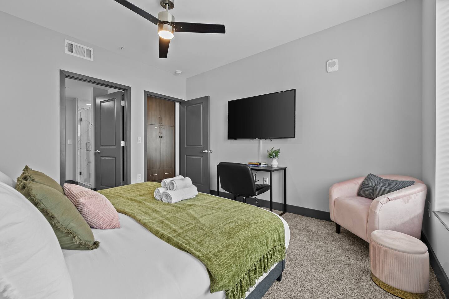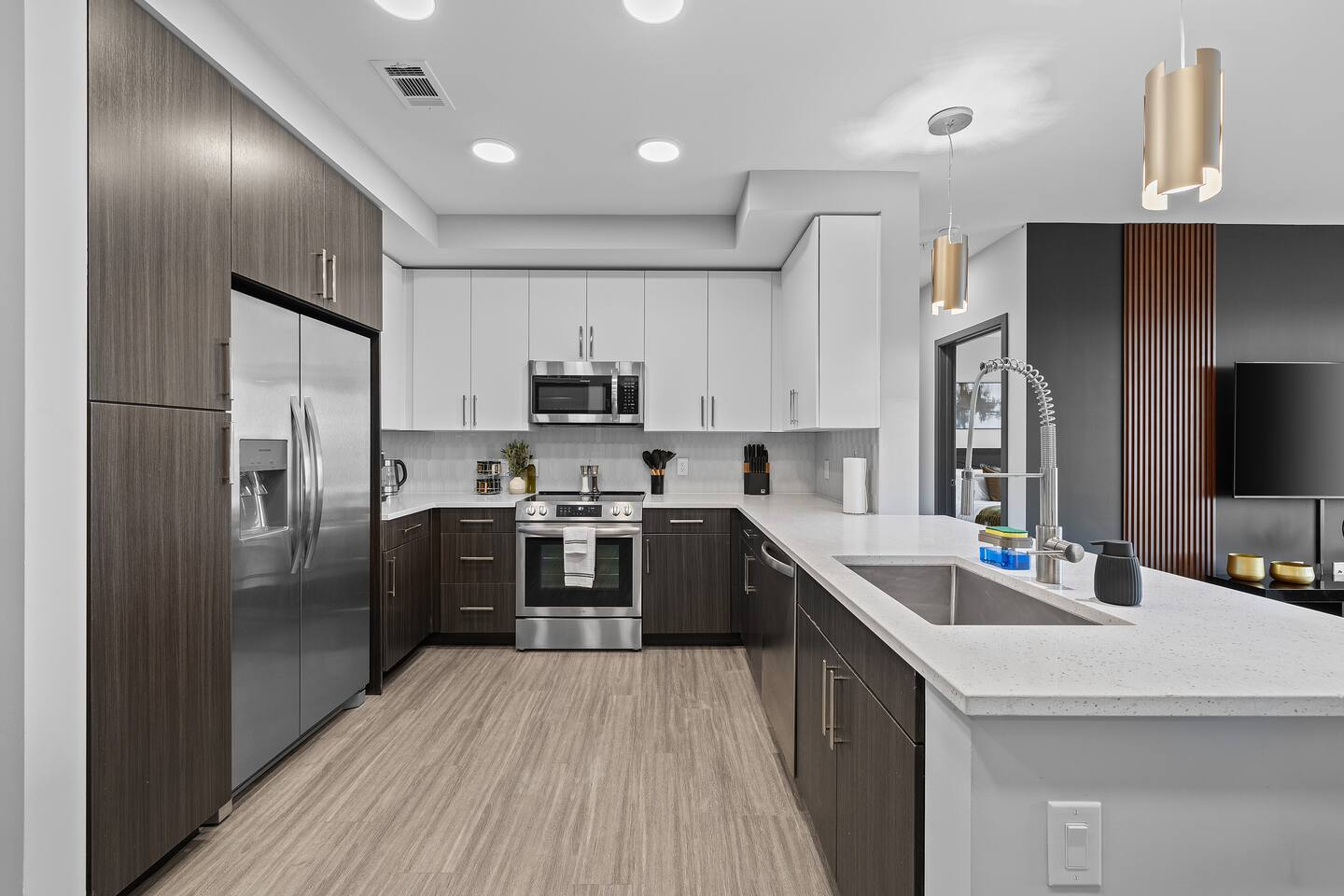 ✨ The Space: ✔ Spacious Living Area – Relax in a beautifully furnished open-concept living space with a smart TV, cozy seating, and plenty of natural light. ✔ Fully Equipped Kitchen – Cook up your favorites in a modern kitchen with stainless steel appliances, quartz countertops, and all essentials. ✔ Master Bedroom – Features a King-sized bed, en-suite bathroom, and walk-in closet for ultimate convenience. ✔ Second Bedroom – Equipped with a comfortable King-sized bed and plenty of storage. ✔ Two Full Bathrooms – Modern and stylish with fresh linens, toiletries, and spa-like touches. ✔ Washer & Dryer – In-unit for added convenience. ✔ Fast WiFi & Smart TVs – Stream your favorite shows or catch up on work with high-speed internet. ✔ On-Site Gated Parking ($12/Day) -- MUST BE ARRANGED BEFORE HAND ⭐ Location Highlights: ✅ 5 minutes to Broadway & Downtown Nashville ✅ Close to The Gulch, Music Row & Vanderbilt University ✅ Walking distance to trendy cafes, bars, and local shops ✅ Quick access to Centennial Park, Marathon Village, and Nissan Stadium 🔥 Exclusive Guest Amenities: • Keyless Entry System for Secure and Convenient Access • Climate Control for Your Comfort • In-Unit Laundry Facilities • Gated Parking ($12/day) • Detailed Guidebook with Local Recommendations • 4K HDTVs with Netflix • High-speed WiFi • Laptop friendly workspace • Ideal for long-term stays • Washer + dryer w/ detergent • Dishwasher w/ detergent • Keurig with coffee • Central A/C & Heat • Club house and community Pool with outdoor grill area access • SKY LOUNGE/GAME room access (inc. Pool Table, Poker Table, Foosball Table) • WIFI ACCESS THROUGHOUT ENTIRE BUILDING 📌 Additional Details: ✔ Self-Check-In with Smart Lock for an easy, seamless arrival ✔ Professionally Cleaned & Stocked with Essentials ✔ Perfect for Couples, Families, or Business Travelers Book now and experience Music City like a local! 🎶✨