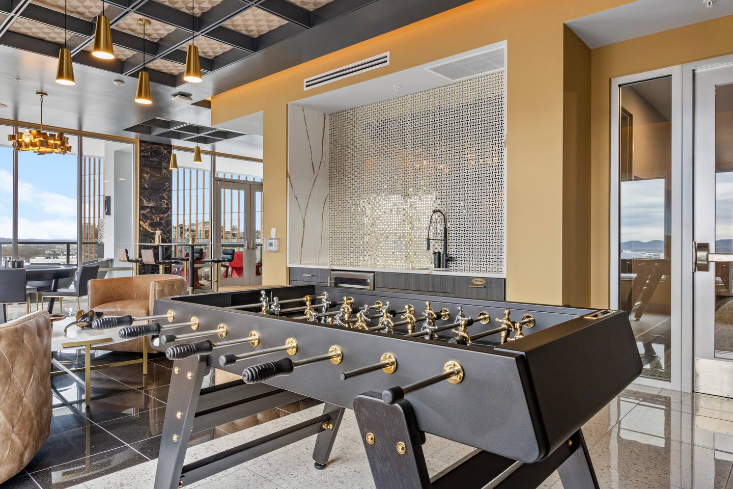 Our Guests have free access to the following amenities: • Club House and Outdoor Resort-Style Swimming Pool* • Poolside Grill Area • 10th Floor Sky Lounge/Game room (inc. Pool table, Poker Table, Foosball Table) • Fitness Center w/ Yoga Studio & Cardio Room *PLEASE NOTE: While we provide access to the building's pool for our guests, it is occasionally closed for maintenance or seasonal issues at the building's discretion. We will not be held responsible if the pool is closed during your trip. We recommend that you contact us to confirm that it is open.