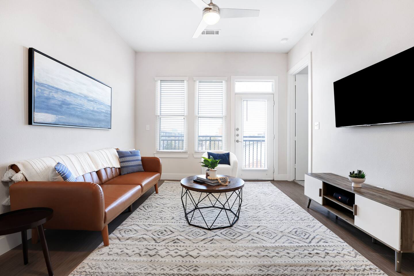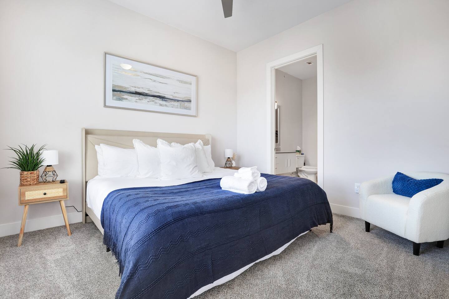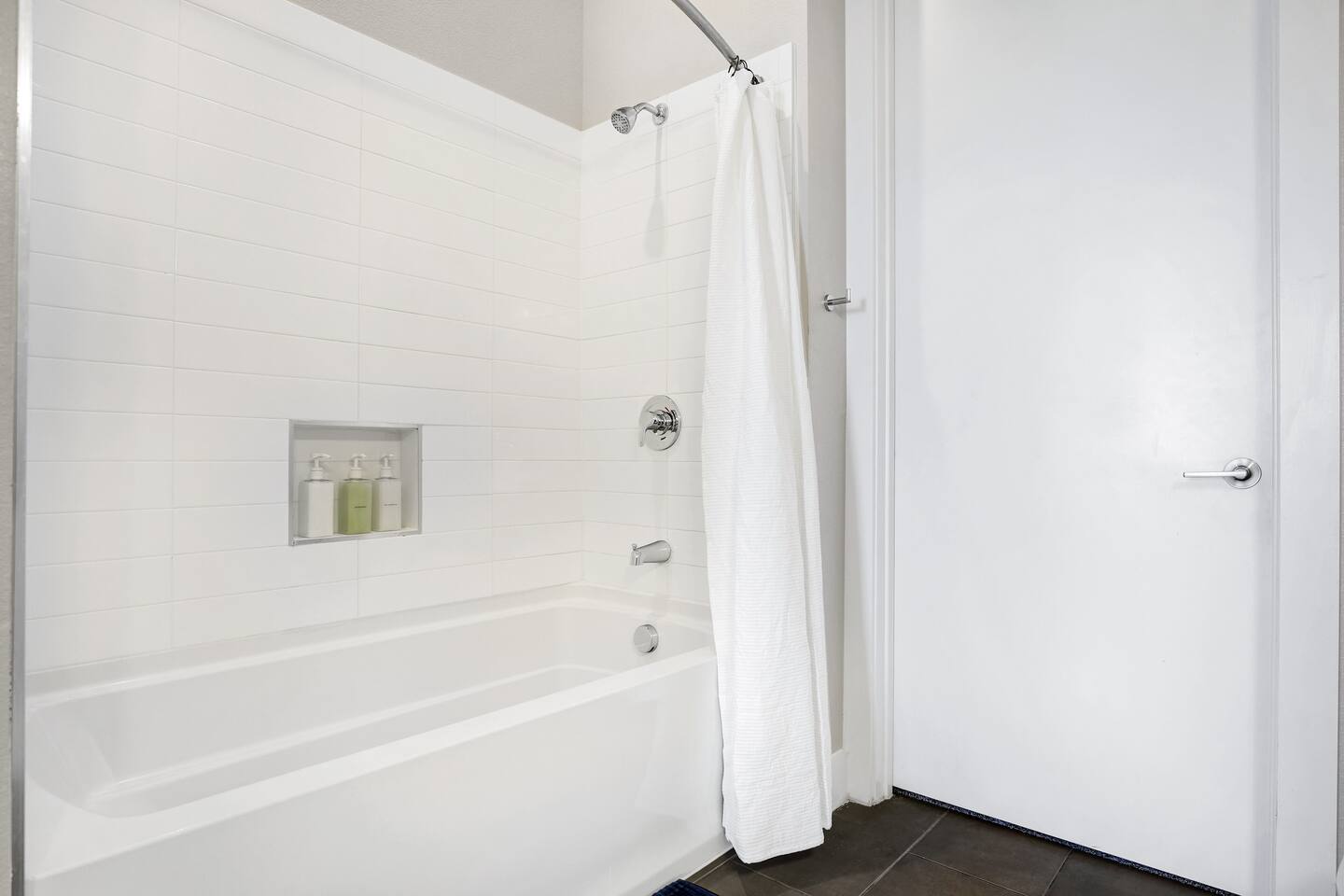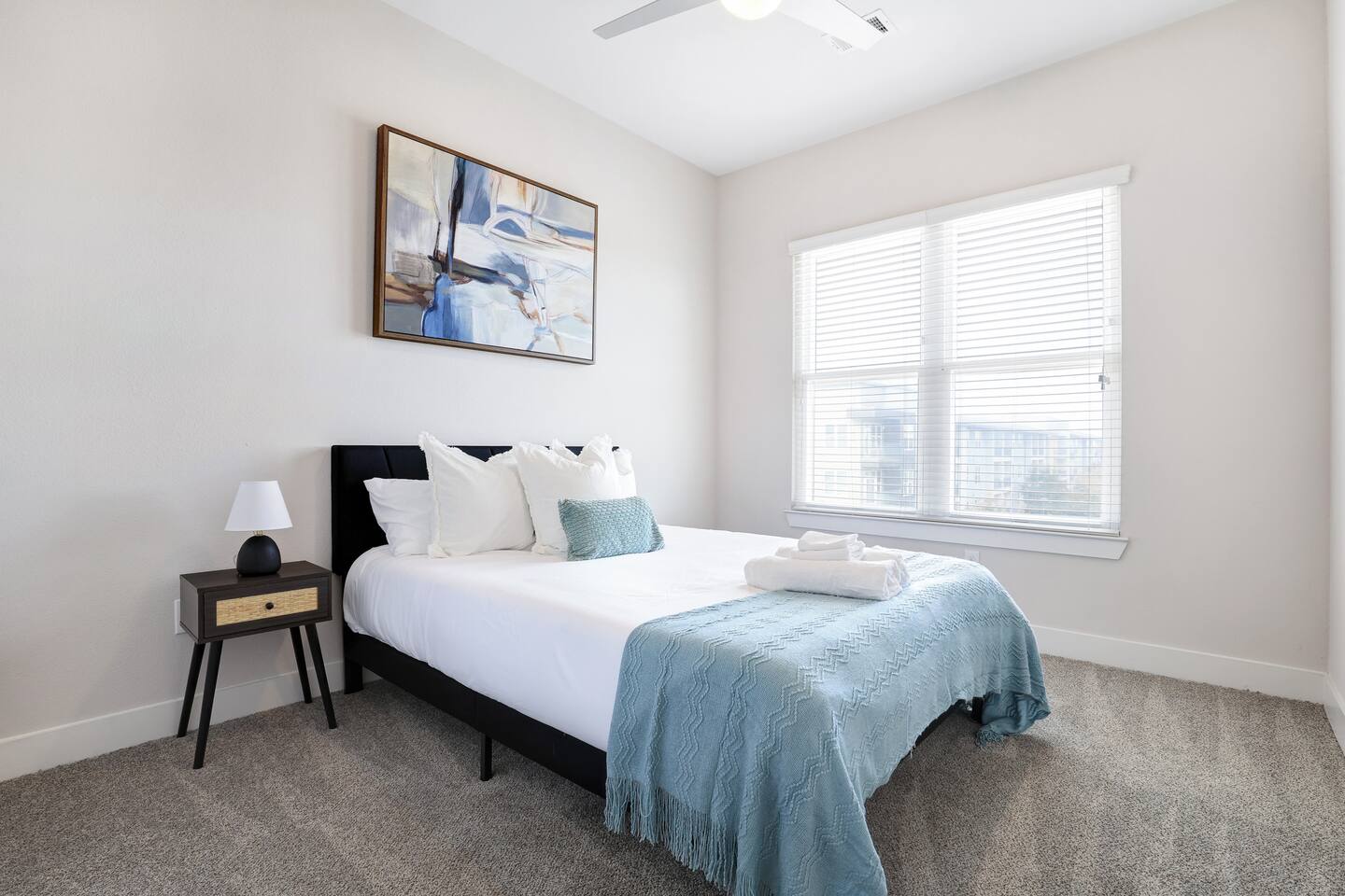 Prime Location: Nestled in a tranquil neighborhood, our apartment is a stone's throw away from the bustling Riverwalk, offering easy access to its array of shops, restaurants, and entertainment options. Comfortable Living Space: Enjoy a spacious living room with modern décor, a 4K Smart TV, and complimentary high-speed Wi-Fi, ideal for relaxation or working remotely . Fully Equipped Kitchen: Whether you're whipping up breakfast or preparing a romantic dinner, our kitchen has everything you need, from stainless steel appliances to cookware and utensils. Luxurious Bedrooms : Drift off to sleep in the king-size bed and queen-size bed with premium bedding and wake up refreshed to start your day exploring what San Antonio has to offer. Bathroom Amenities: Both bathrooms are stocked with fluffy towels, toiletries, and a hairdryer for your convenience. Exclusive Guest Amenities: • Keyless Entry System for Secure and Convenient Access • Climate Control for Your Comfort • In-Unit Laundry Facilities • Complimentary Parking Space • Detailed Guidebook with Local Recommendations • 4K HDTVs with Netflix • High-speed WiFi • Laptop friendly workspace • Ideal for long-term stays • Washer + dryer w/ detergent • Dishwasher w/ detergent • Keurig with coffee • Central A/C & Heat • Community pool, fitness center, grill area • E-Bike Share station ($) + Walking/Biking trail • Free parking Explore Nearby: • San Antonio Riverwalk (0.3 miles): Just a short walk away, explore this famed attraction that winds through the city center, offering a unique blend of cultural experiences, dining, and entertainment. • The Alamo (0.8 miles): Dive into history at this iconic mission, a testament to Texas' spirit and independence. • Pearl District (1.2 miles): Discover the culinary and cultural hub of San Antonio, with its vibrant farmers' market, boutiques, and eateries. • Museums & Art (0.6 miles): Visit the San Antonio Museum of Art and the Briscoe Western Art Museum for a dose of creativity and inspiration. Guest Experience: Our commitment to your comfort is paramount. From the moment you book to the time you check out, we ensure a seamless and personalized experience. Our apartment is professionally cleaned and prepared for each guest, adhering to the highest standards of cleanliness and hospitality.
