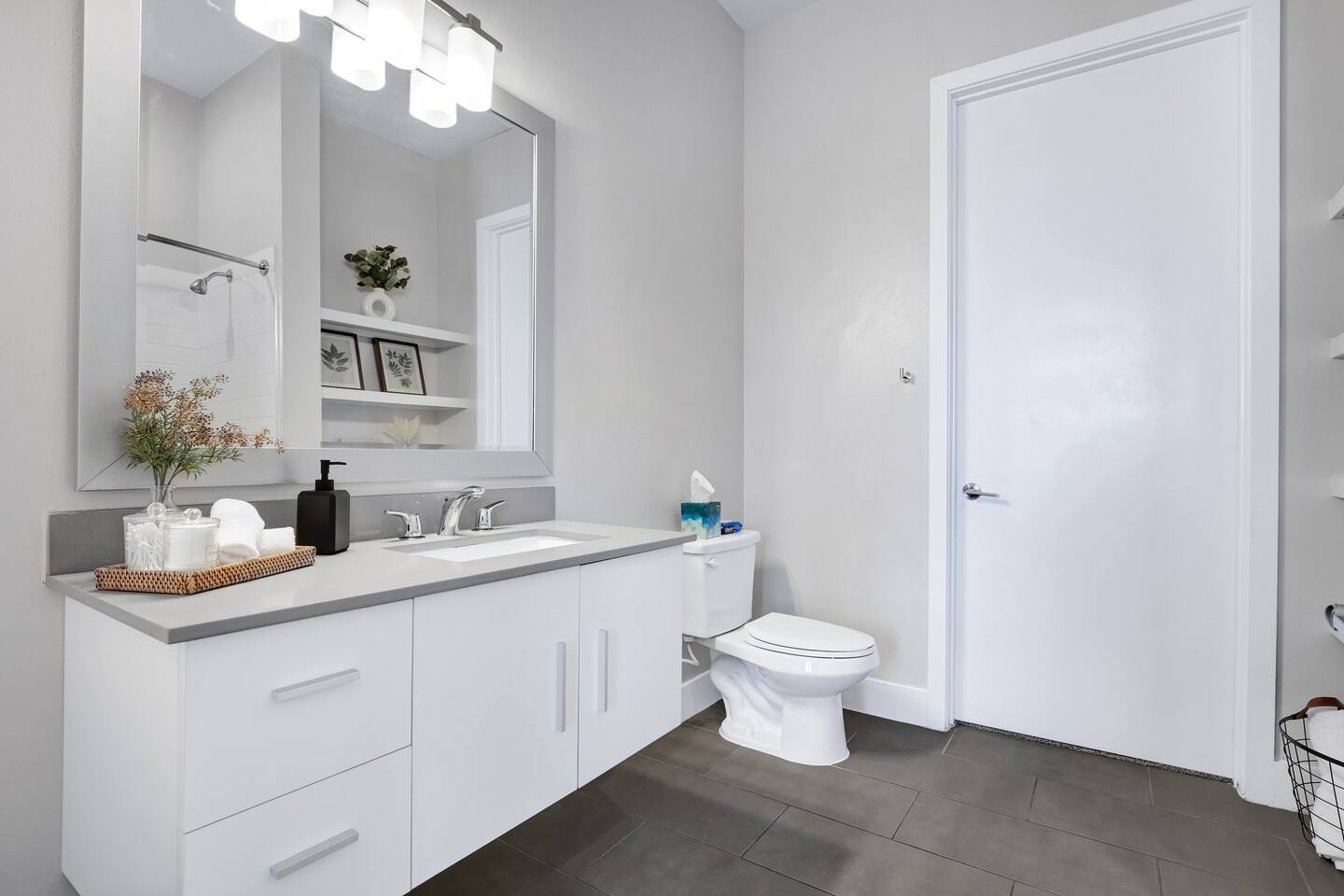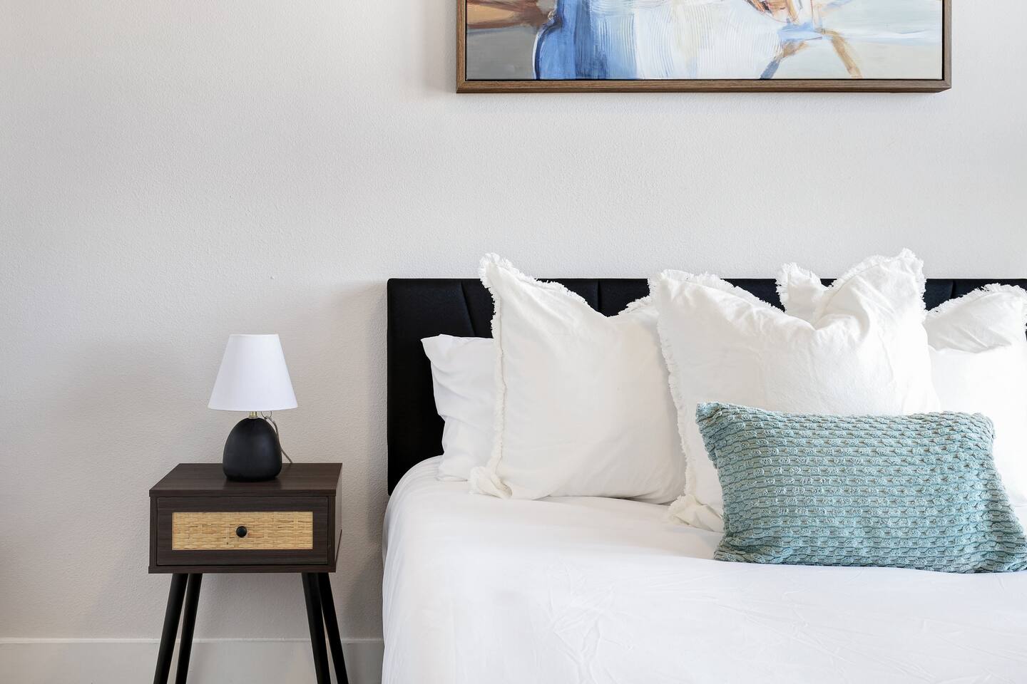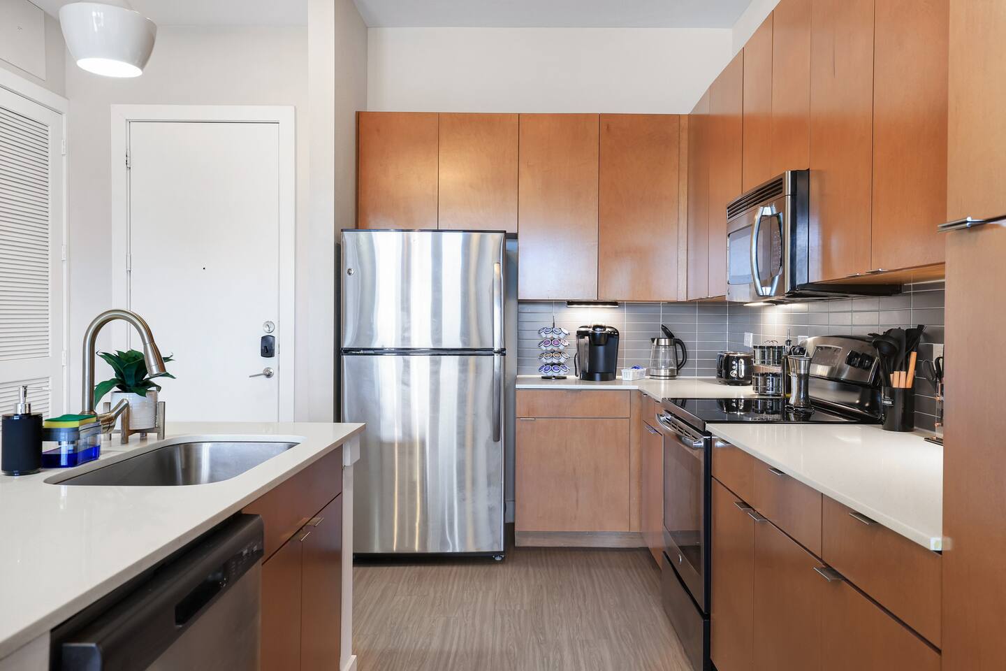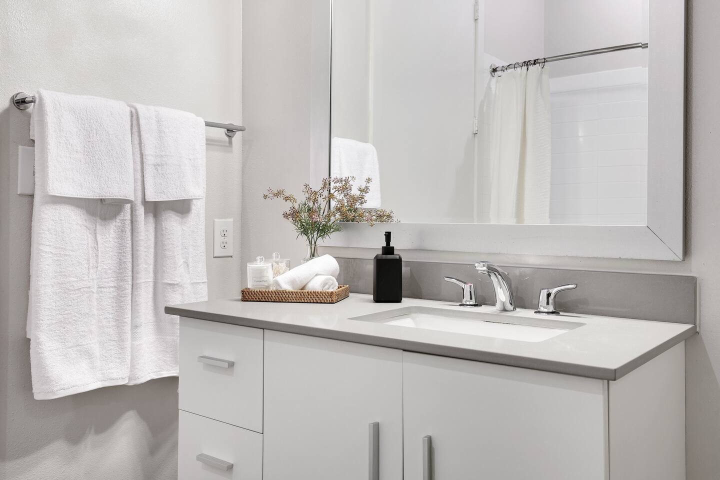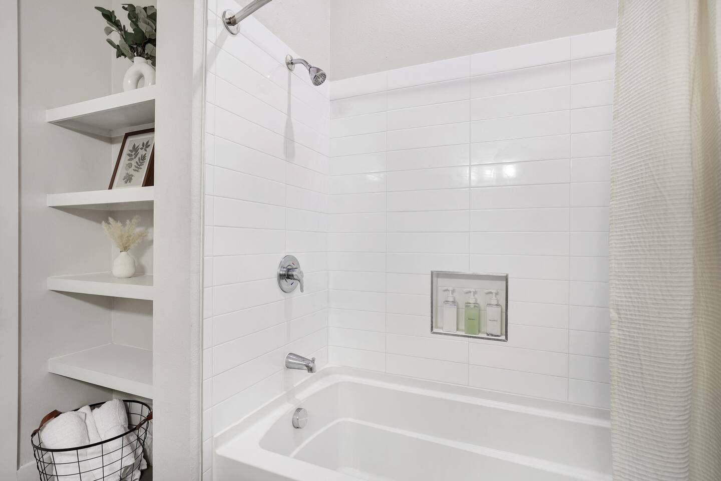 Prime Location: Nestled in a tranquil neighborhood, our apartment is a stone's throw away from the bustling Riverwalk, offering easy access to its array of shops, restaurants, and entertainment options. Comfortable Living Space: Enjoy a spacious living room with modern décor, a 4K Smart TV, and complimentary high-speed Wi-Fi, ideal for relaxation or working remotely . Fully Equipped Kitchen: Whether you're whipping up breakfast or preparing a romantic dinner, our kitchen has everything you need, from stainless steel appliances to cookware and utensils. Luxurious Bedrooms : Drift off to sleep in the king-size bed and queen-size bed with premium bedding and wake up refreshed to start your day exploring what San Antonio has to offer. Bathroom Amenities: Both bathrooms are stocked with fluffy towels, toiletries, and a hairdryer for your convenience. Exclusive Guest Amenities: • Keyless Entry System for Secure and Convenient Access • Climate Control for Your Comfort • In-Unit Laundry Facilities • Complimentary Parking Space • Detailed Guidebook with Local Recommendations • 4K HDTVs with Netflix • High-speed WiFi • Laptop friendly workspace • Ideal for long-term stays • Washer + dryer w/ detergent • Dishwasher w/ detergent • Keurig with coffee • Central A/C & Heat • Community pool, fitness center, grill area • E-Bike Share station ($) + Walking/Biking trail • Free parking Explore Nearby: • San Antonio Riverwalk (0.3 miles): Just a short walk away, explore this famed attraction that winds through the city center, offering a unique blend of cultural experiences, dining, and entertainment. • The Alamo (0.8 miles): Dive into history at this iconic mission, a testament to Texas' spirit and independence. • Pearl District (1.2 miles): Discover the culinary and cultural hub of San Antonio, with its vibrant farmers' market, boutiques, and eateries. • Museums & Art (0.6 miles): Visit the San Antonio Museum of Art and the Briscoe Western Art Museum for a dose of creativity and inspiration. Guest Experience: Our commitment to your comfort is paramount. From the moment you book to the time you check out, we ensure a seamless and personalized experience. Our apartment is professionally cleaned and prepared for each guest, adhering to the highest standards of cleanliness and hospitality.