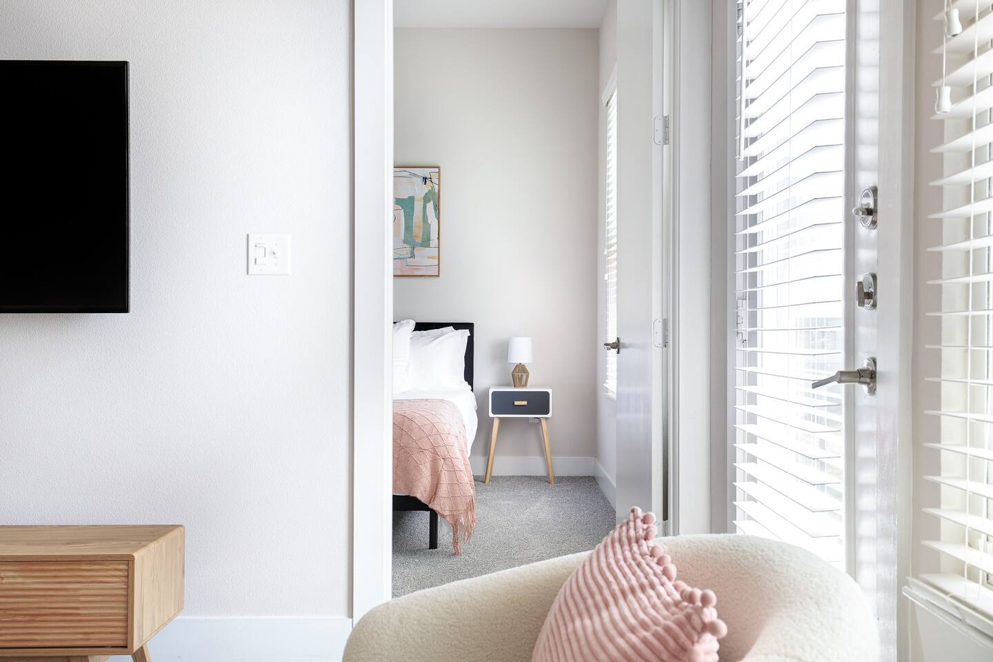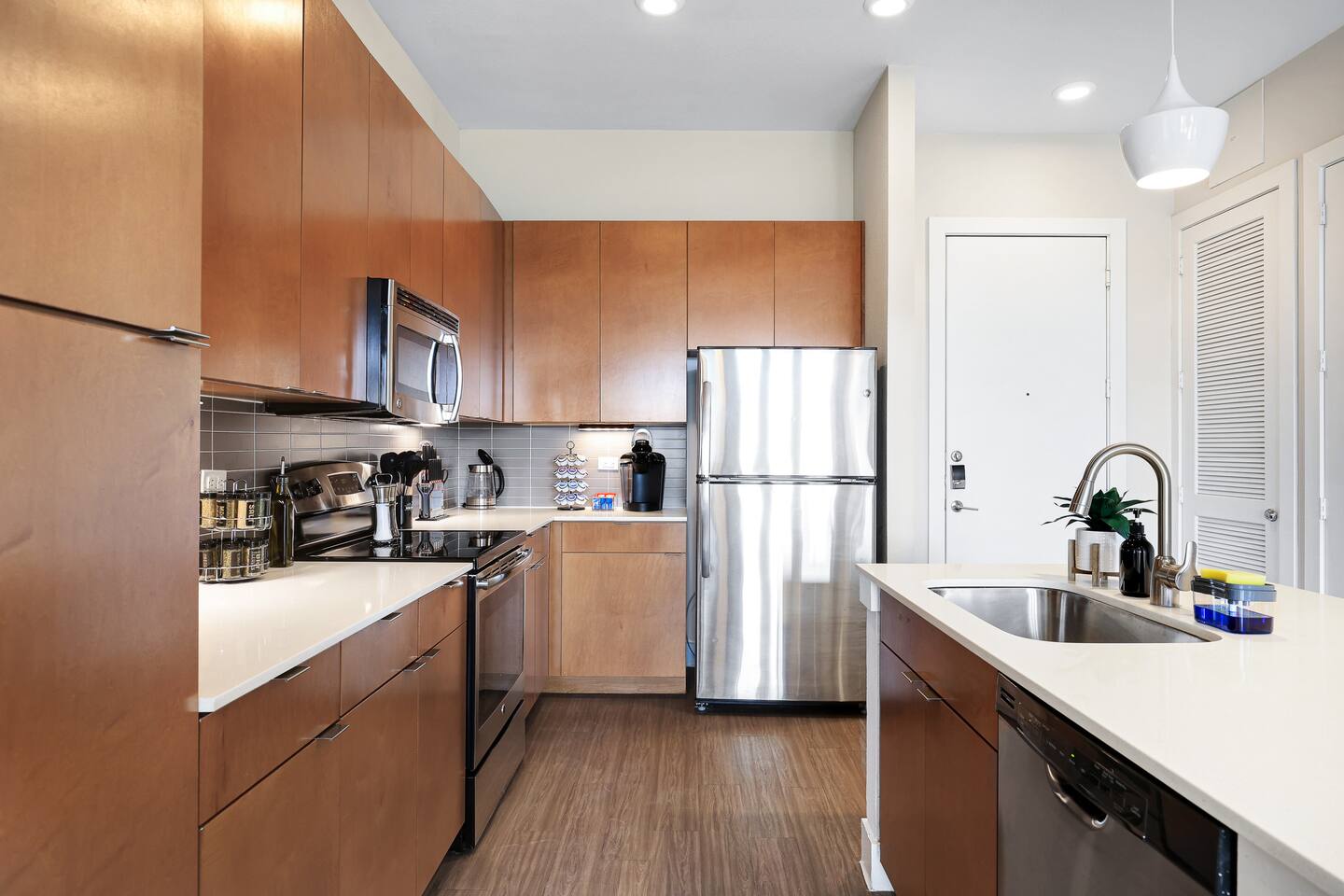 Prime Location: Nestled in a tranquil neighbourhood, our apartment is a stone's throw away from the bustling Riverwalk, offering easy access to its array of shops, restaurants, and entertainment options. Comfortable Living Space: Enjoy a spacious living room with modern décor, a 4K Smart TV, and complimentary high-speed Wi-Fi, ideal for relaxation or working remotely . Fully Equipped Kitchen: Whether you're whipping up breakfast or preparing a romantic dinner, our kitchen has everything you need, from stainless steel appliances to cookware and utensils. Luxurious Bedrooms : Drift off to sleep in the king-size beds with premium bedding and wake up refreshed to start your day exploring what San Antonio has to offer. Bathroom Amenities: Both bathrooms are stocked with fluffy towels, toiletries, and a hairdryer for your convenience. Exclusive Guest Amenities: • Keyless Entry System for Secure and Convenient Access • Climate Control for Your Comfort • In-Unit Laundry Facilities • Complimentary Parking Space • Detailed Guidebook with Local Recommendations • 4K HDTVs with Netflix • High-speed WiFi • Laptop friendly workspace • Ideal for long-term stays • Washer + dryer w/ detergent • Dishwasher w/ detergent • Keurig with coffee • Central A/C & Heat • Community pool, fitness center, grill area • E-Bike Share station ($) + Walking/Biking trail • Free parking Explore Nearby: • San Antonio Riverwalk (0.3 miles): Just a short walk away, explore this famed attraction that winds through the city center, offering a unique blend of cultural experiences, dining, and entertainment. • The Alamo (0.8 miles): Dive into history at this iconic mission, a testament to Texas' spirit and independence. • Pearl District (1.2 miles): Discover the culinary and cultural hub of San Antonio, with its vibrant farmers' market, boutiques, and eateries. • Museums & Art (0.6 miles): Visit the San Antonio Museum of Art and the Briscoe Western Art Museum for a dose of creativity and inspiration. Guest Experience: Our commitment to your comfort is paramount. From the moment you book to the time you check out, we ensure a seamless and personalized experience. Our apartment is professionally cleaned and prepared for each guest, adhering to the highest standards of cleanliness and hospitality.