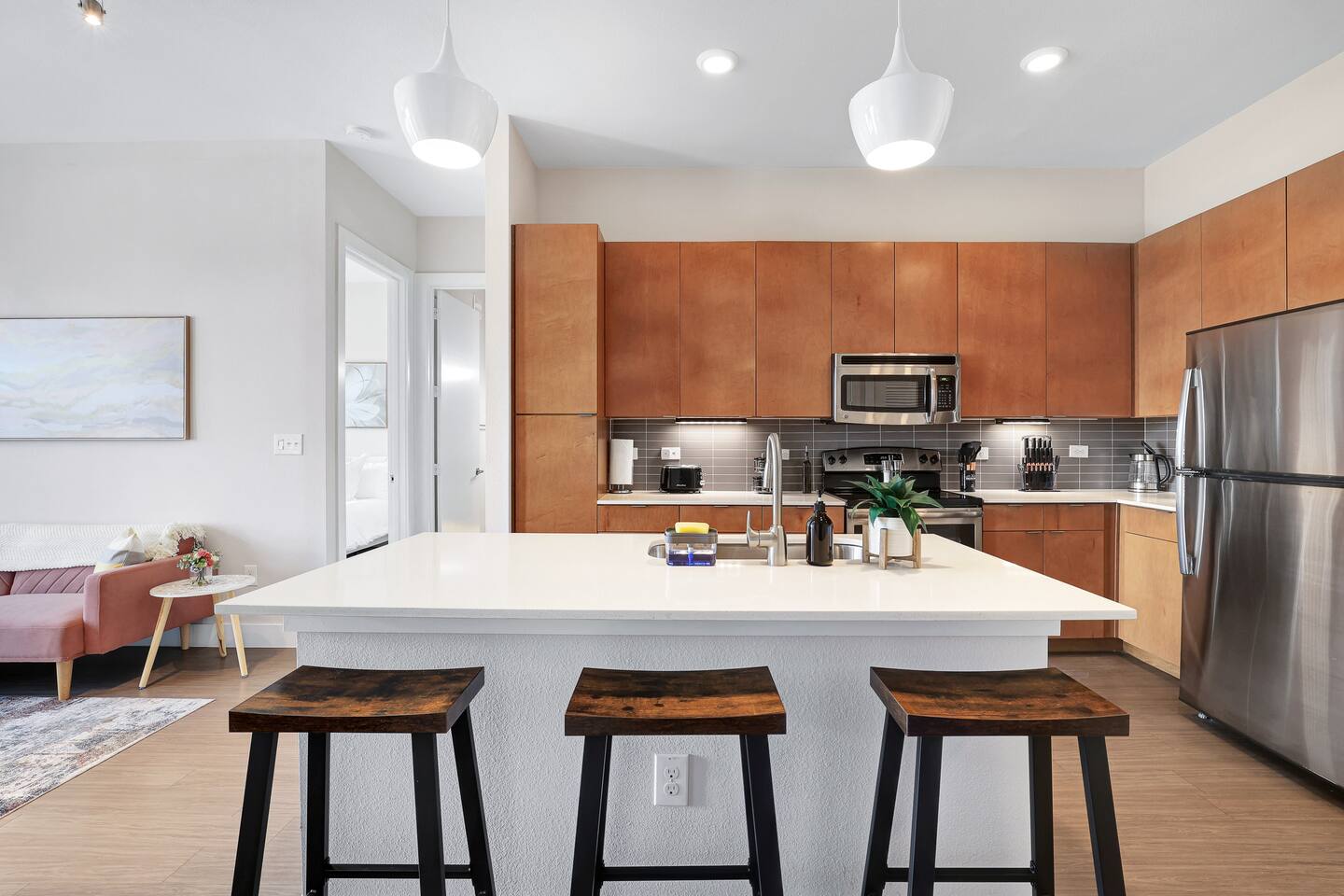 Welcome to your cozy oasis in the heart of San Antonio! Our luxurious and delightful 2BR|King beds apartment combines comfort and convenience, located just steps from the iconic River Walk. Discover the vibrant culture and rich history of San Antonio effortlessly from this prime spot, perfect for families, friends, or business travelers seeking a memorable stay. Inside, you'll find a fully equipped kitchen, inviting living areas, and tranquil bedrooms designed for relaxation and rejuvenation.