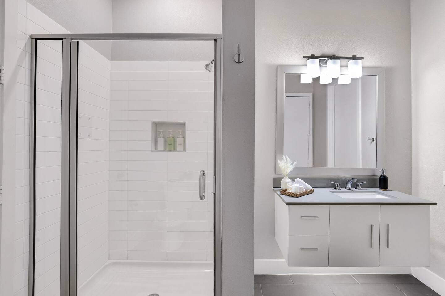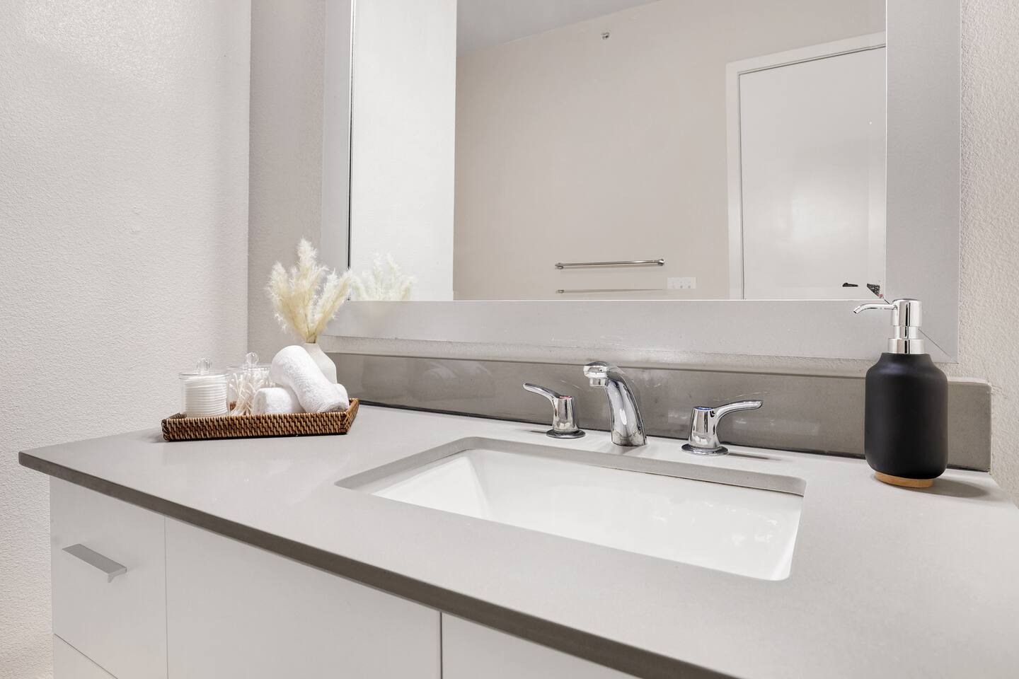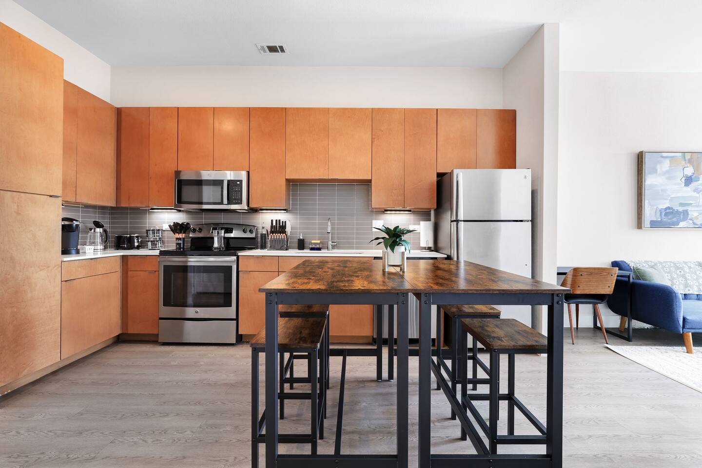 Prime Location: Nestled in a tranquil neighborhood, our apartment is a stone's throw away from the bustling Riverwalk, offering easy access to its array of shops, restaurants, and entertainment options. Comfortable Living Space: Enjoy a spacious living room with modern décor, a 4K Smart TV, and complimentary high-speed Wi-Fi, ideal for relaxation or working remotely . Fully Equipped Kitchen: Whether you're whipping up breakfast or preparing a romantic dinner, our kitchen has everything you need, from stainless steel appliances to cookware and utensils. Luxurious Bedroom: Drift off to sleep in the king-size bed with premium bedding and wake up refreshed to start your day exploring what San Antonio has to offer. Bathroom Amenities: The bathroom is stocked with fluffy towels, toiletries, and a hairdryer for your convenience. Exclusive Guest Amenities: • Keyless Entry System for Secure and Convenient Access • Climate Control for Your Comfort • In-Unit Laundry Facilities • Complimentary Parking Space • Detailed Guidebook with Local Recommendations • 4K HDTVs with Netflix • High-speed WiFi • Laptop friendly workspace • Ideal for long-term stays • Washer + dryer w/ detergent • Dishwasher w/ detergent • Keurig with coffee • Central A/C & Heat • Community pool, fitness center, grill area • E-Bike Share station ($) + Walking/Biking trail • Free parking Explore Nearby: • San Antonio Riverwalk (0.3 miles): Just a short walk away, explore this famed attraction that winds through the city center, offering a unique blend of cultural experiences, dining, and entertainment. • The Alamo (0.8 miles): Dive into history at this iconic mission, a testament to Texas' spirit and independence. • Pearl District (1.2 miles): Discover the culinary and cultural hub of San Antonio, with its vibrant farmers' market, boutiques, and eateries. • Museums & Art (0.6 miles): Visit the San Antonio Museum of Art and the Briscoe Western Art Museum for a dose of creativity and inspiration. Guest Experience: Our commitment to your comfort is paramount. From the moment you book to the time you check out, we ensure a seamless and personalized experience. Our apartment is professionally cleaned and prepared for each guest, adhering to the highest standards of cleanliness and hospitality.